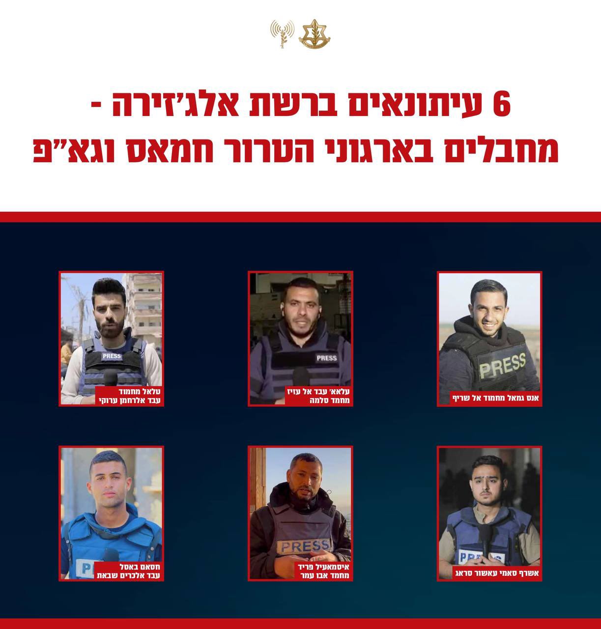 نشر جيش الاحتلال الإسرائيلي صوراً لستة صحافيين، من بينهم أنس الشريف وحسام شبات، مدعياً أنهم مقاتلون في المقاومة الفلسطينية .