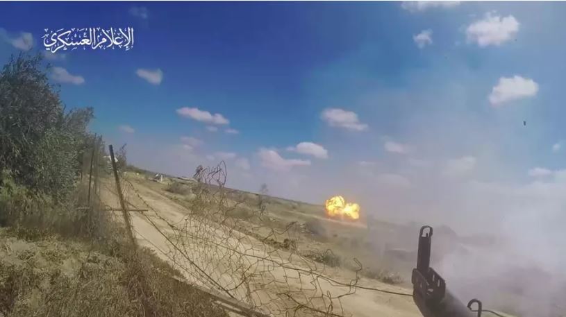 وخرج مقاتلو القسام، لمهاجمة حفار هندسي للاحتلال، من داخل أحد الأنفاق، وقاموا بضربه بواسطة قذيفة الياسين، فيما تلاحقت المشاهد خلال استهداف دبابات وجرافات الاحتلال، وكان بجانب بعضها جنود للاحتلال.
